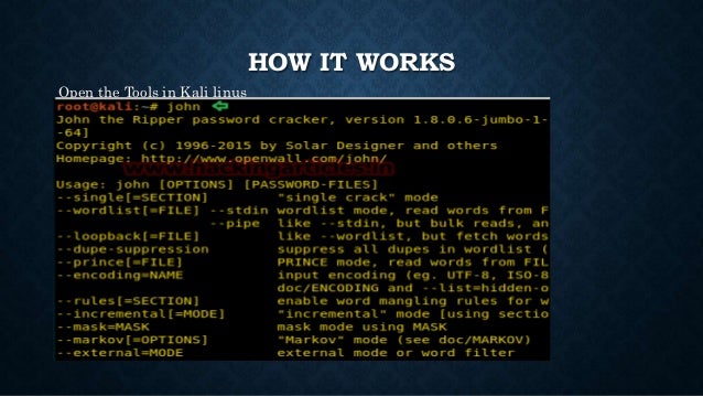 Download and extract the pwdump in the working directory. Simply by typing pwdump in the command prompt, we can retrieve the local client account hashes from the SAM database. Also, we can extract the hashes to the file pwdump7 hash.txt. Offline Password Cracking with John the Ripper. John the Ripper is intended to be both elements rich. John the Ripper Pro is currently available for Linux on x86 and x86-64 (x64) systems, with support for the latest Intel and AMD processor features such as SSE2, and for Mac OS X on both Intel and PowerPC Macs, making use of SSE2 and AltiVec acceleration, respectively.